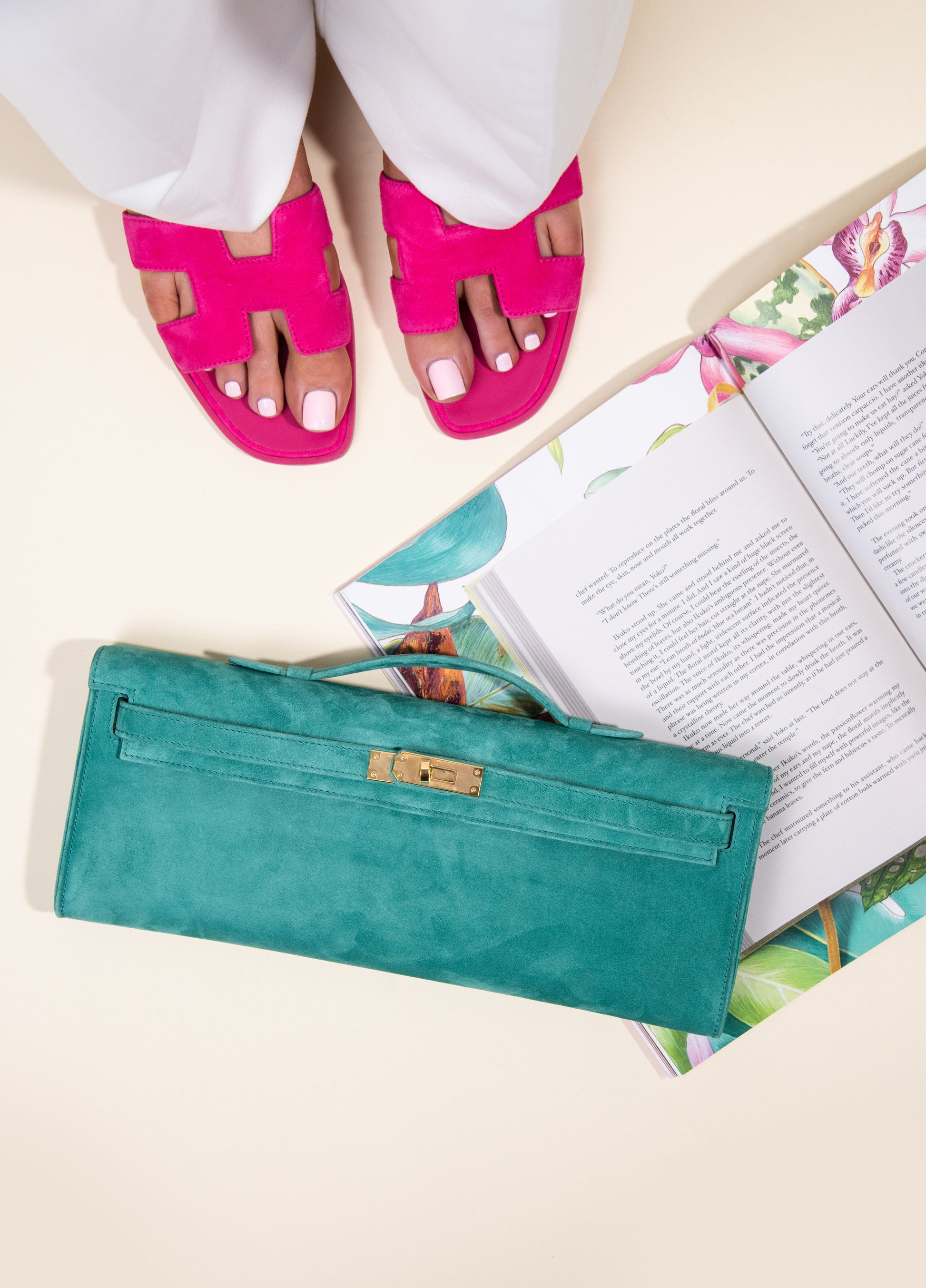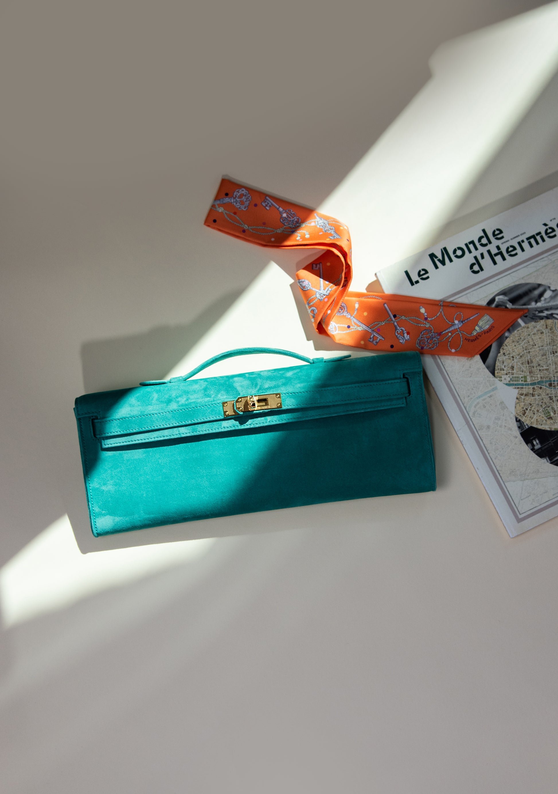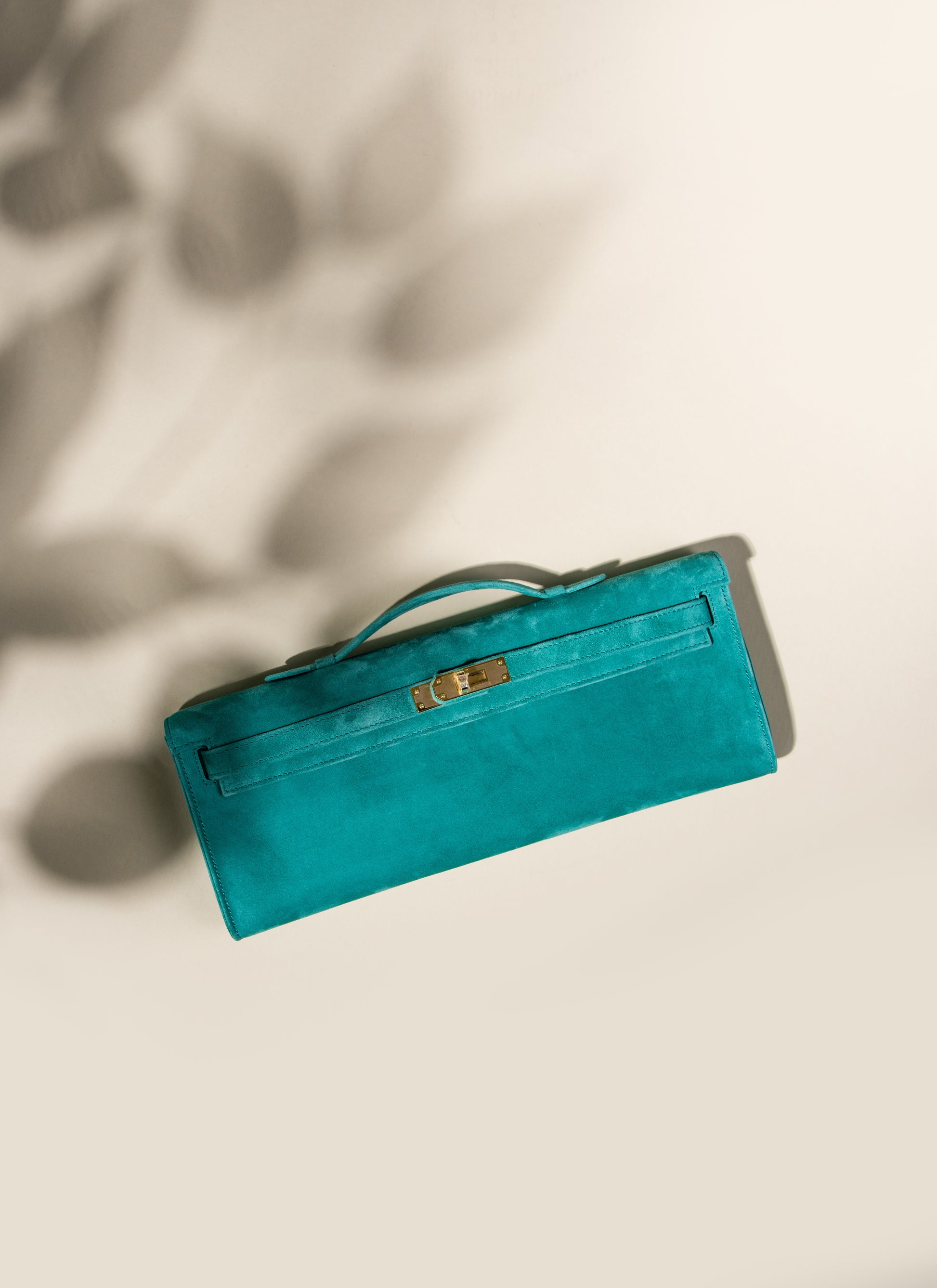هيرميس - حقيبة يد كيلي من جلد الغزال باللون الأخضر Vert Verone GHW