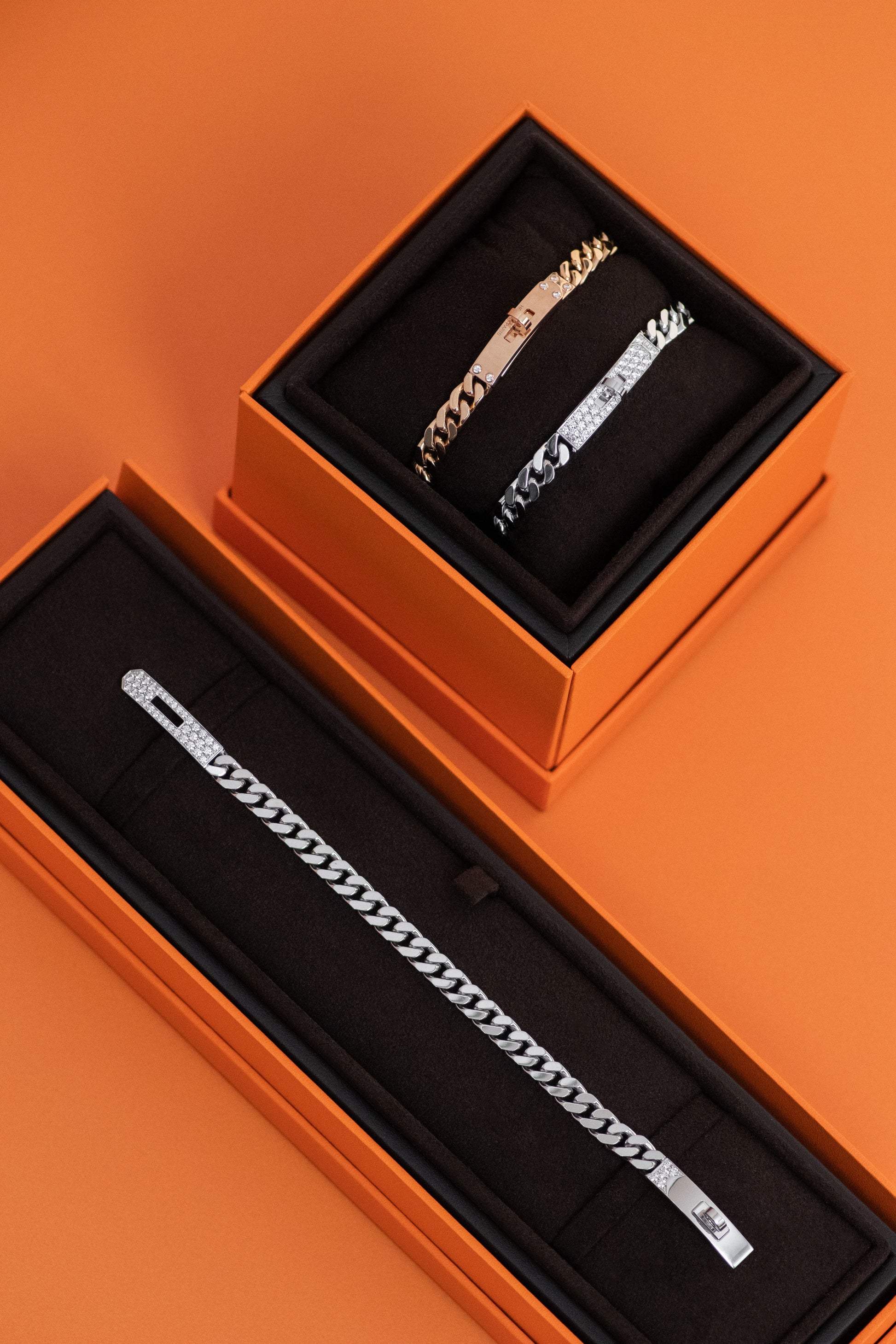 أساور هيرميس كيلي جورميه من الذهب الوردي والفضة مرصعة بالألماس
