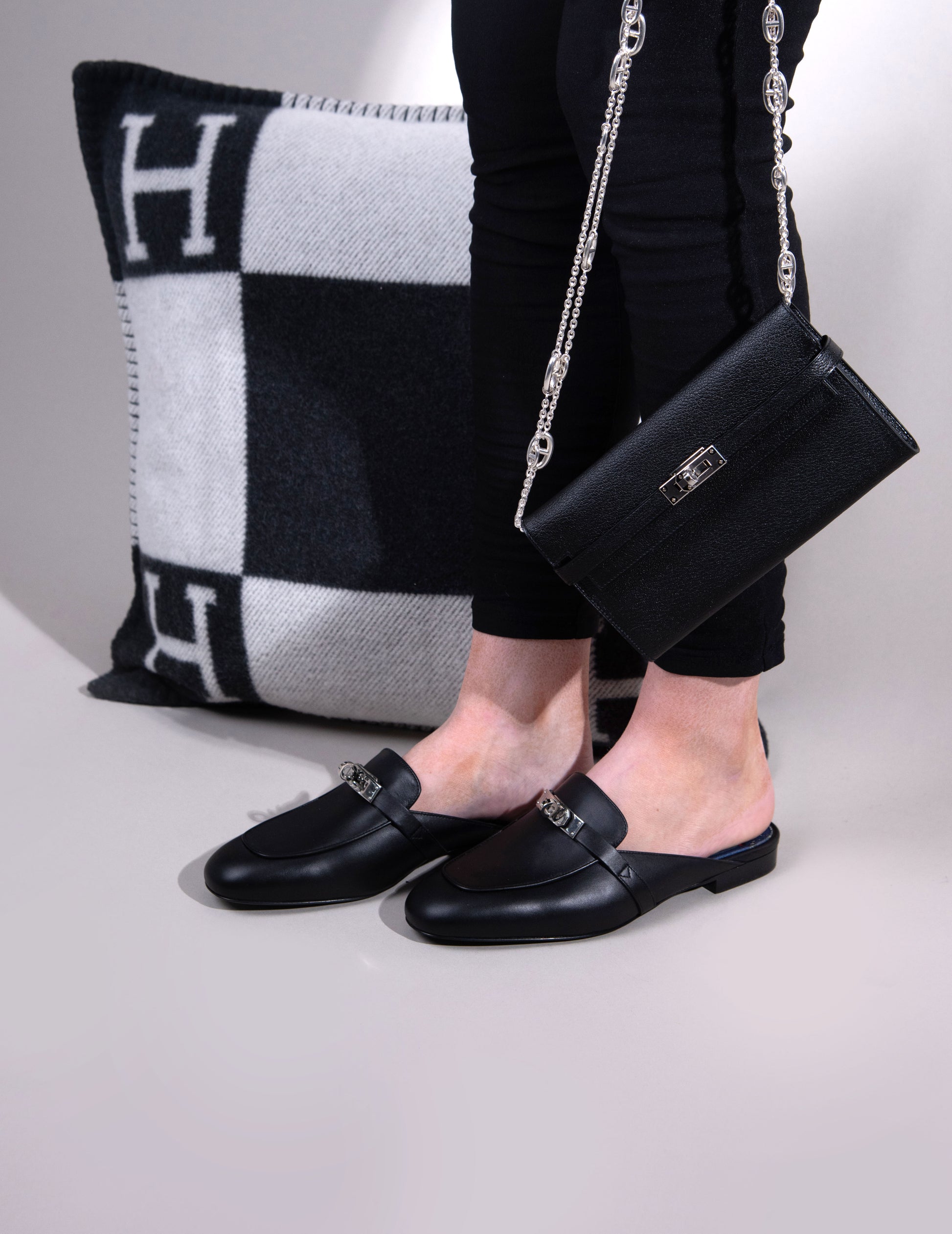 Hermès Kelly Wallet To Go Black PHW & Black Oz Mules PHW