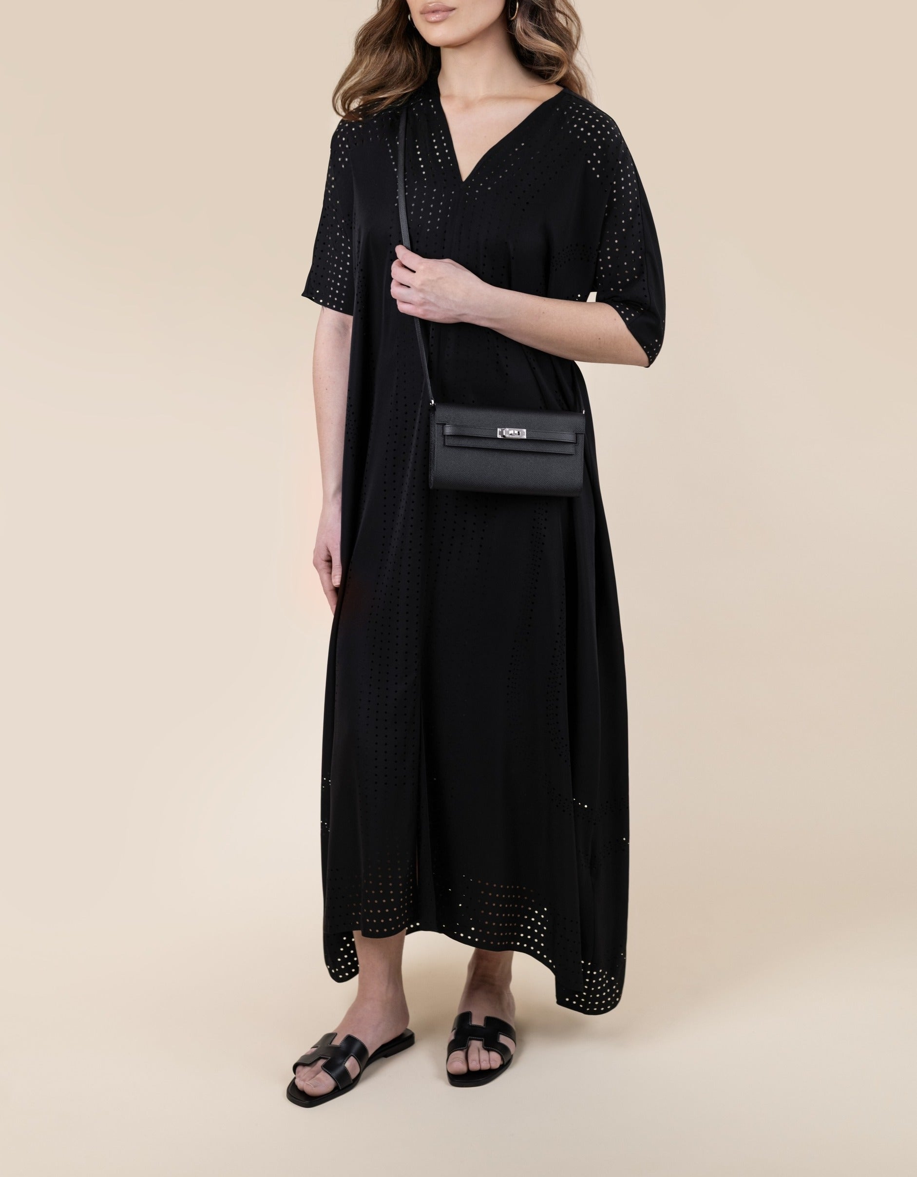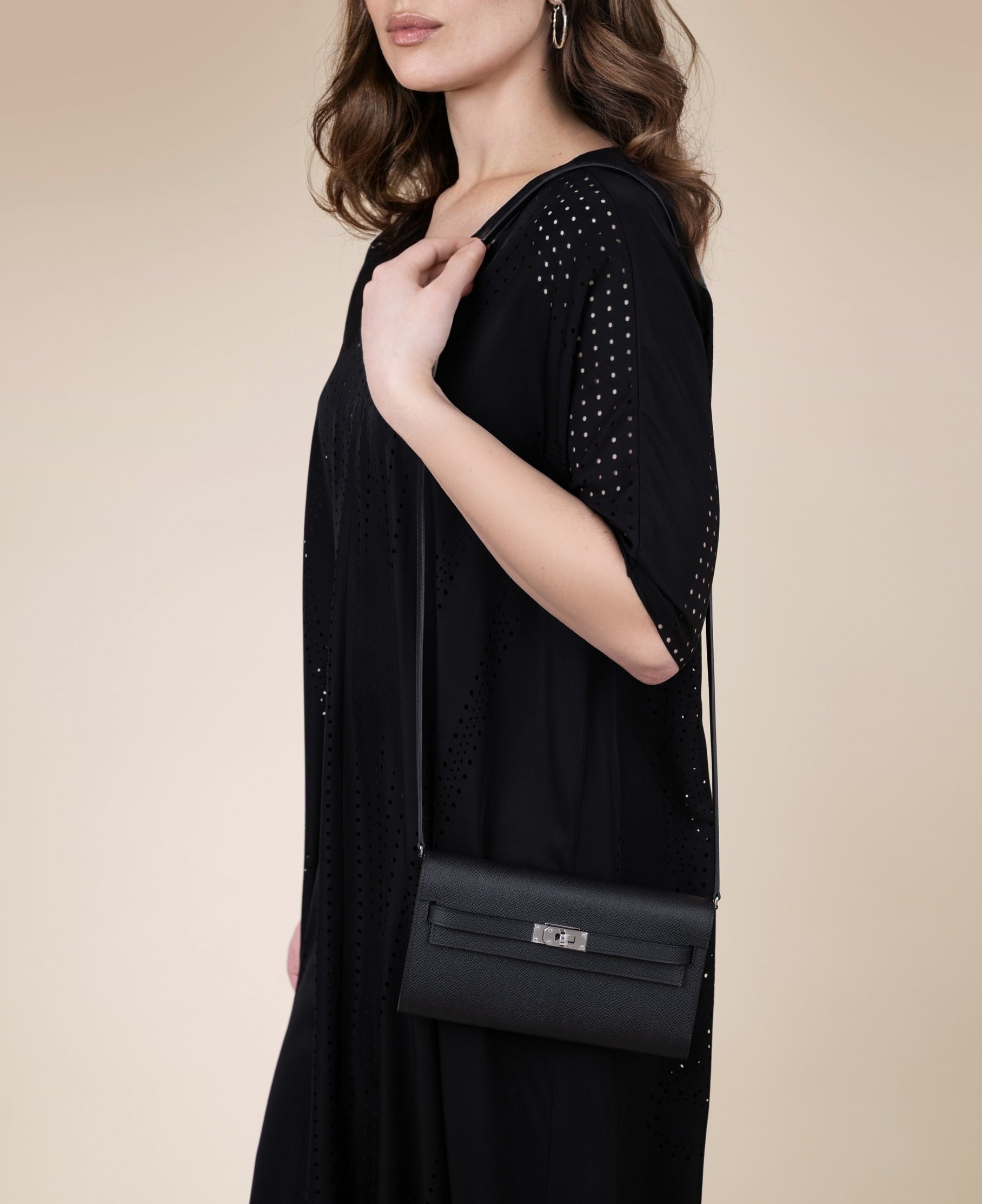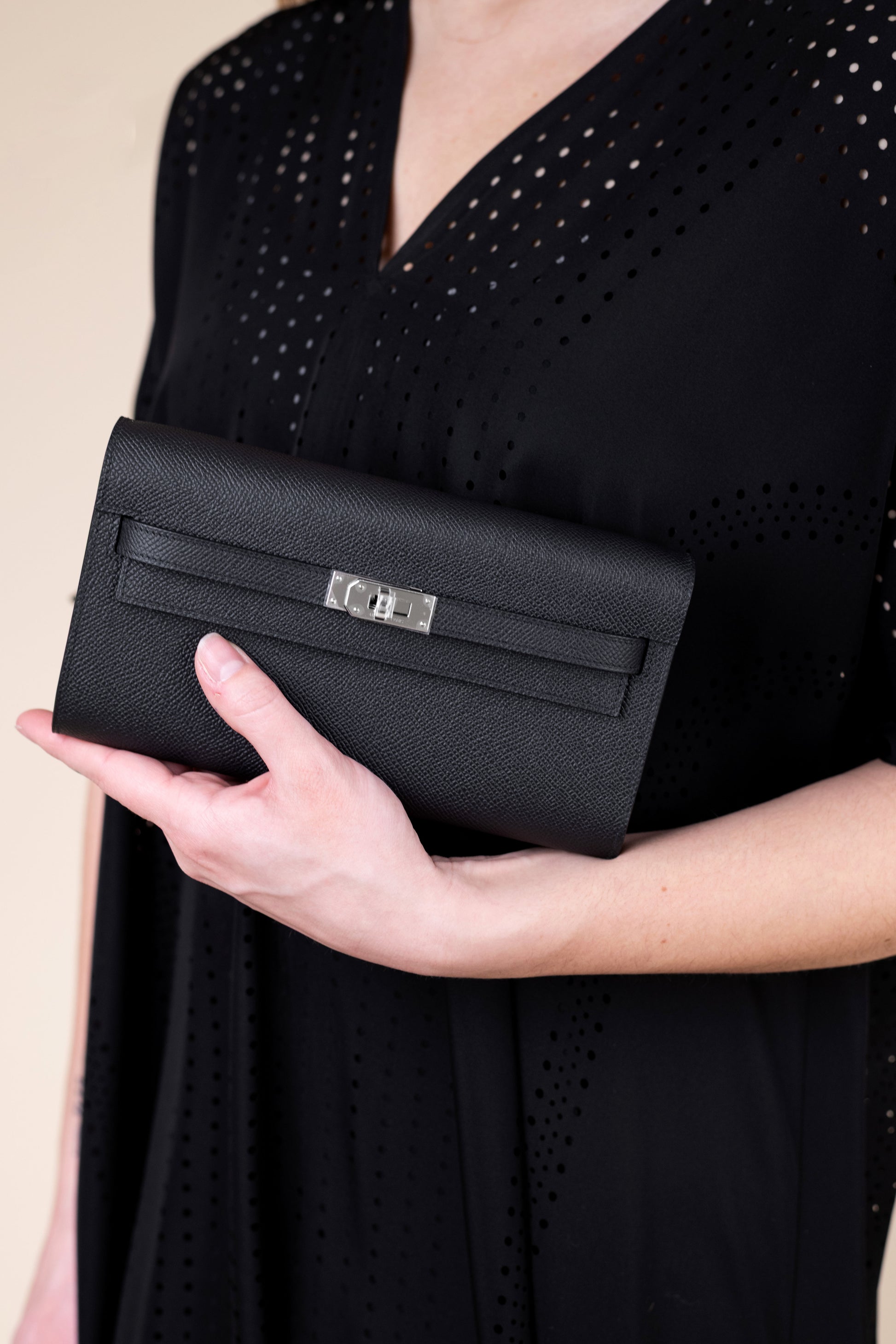 محفظة هيرميس كيلي تو جو إبسوم سوداء PHW مع قفطان مثقب أسود