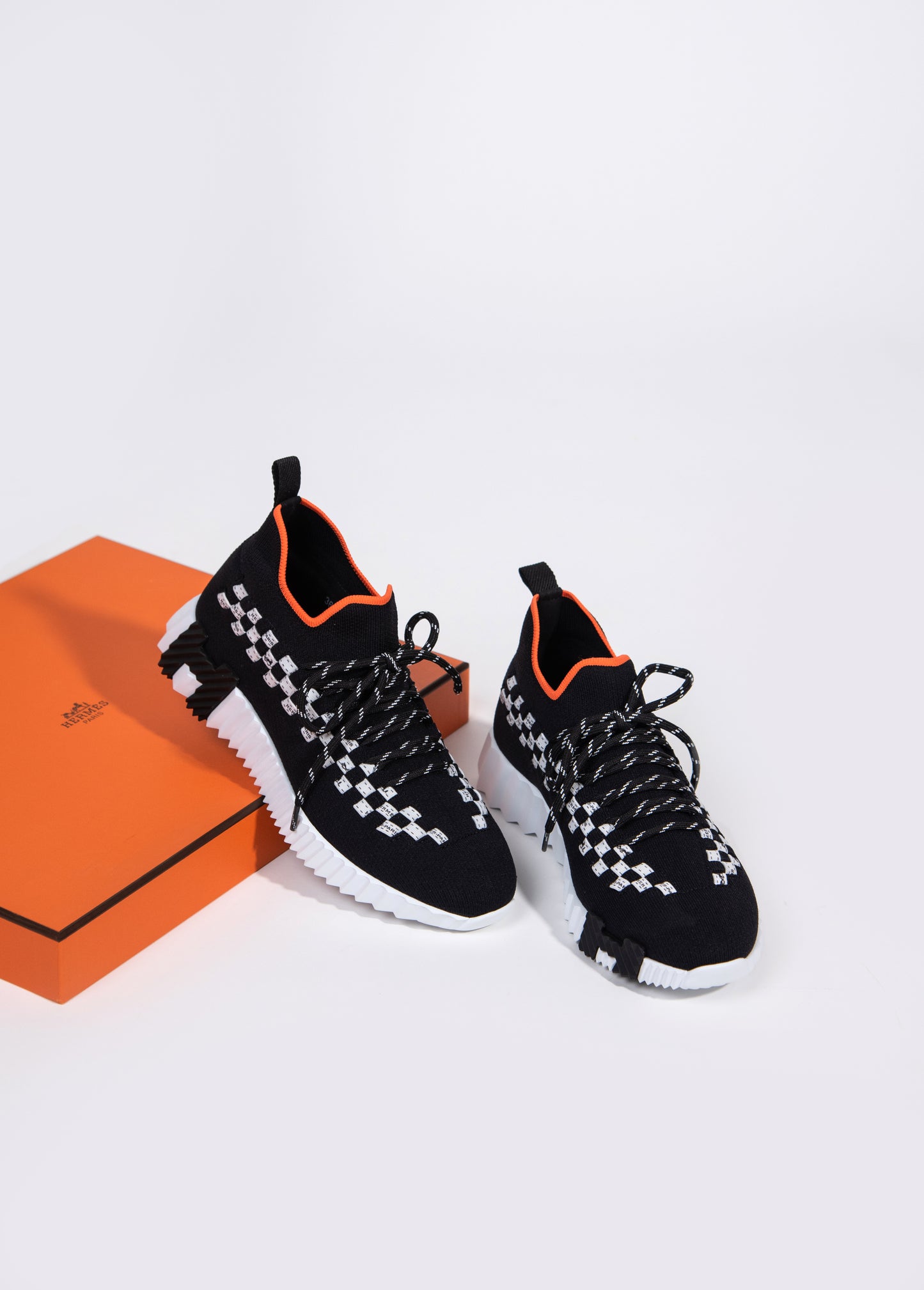 هيرميس - حذاء رياضي محبوك باللونين الأسود والأبيض
