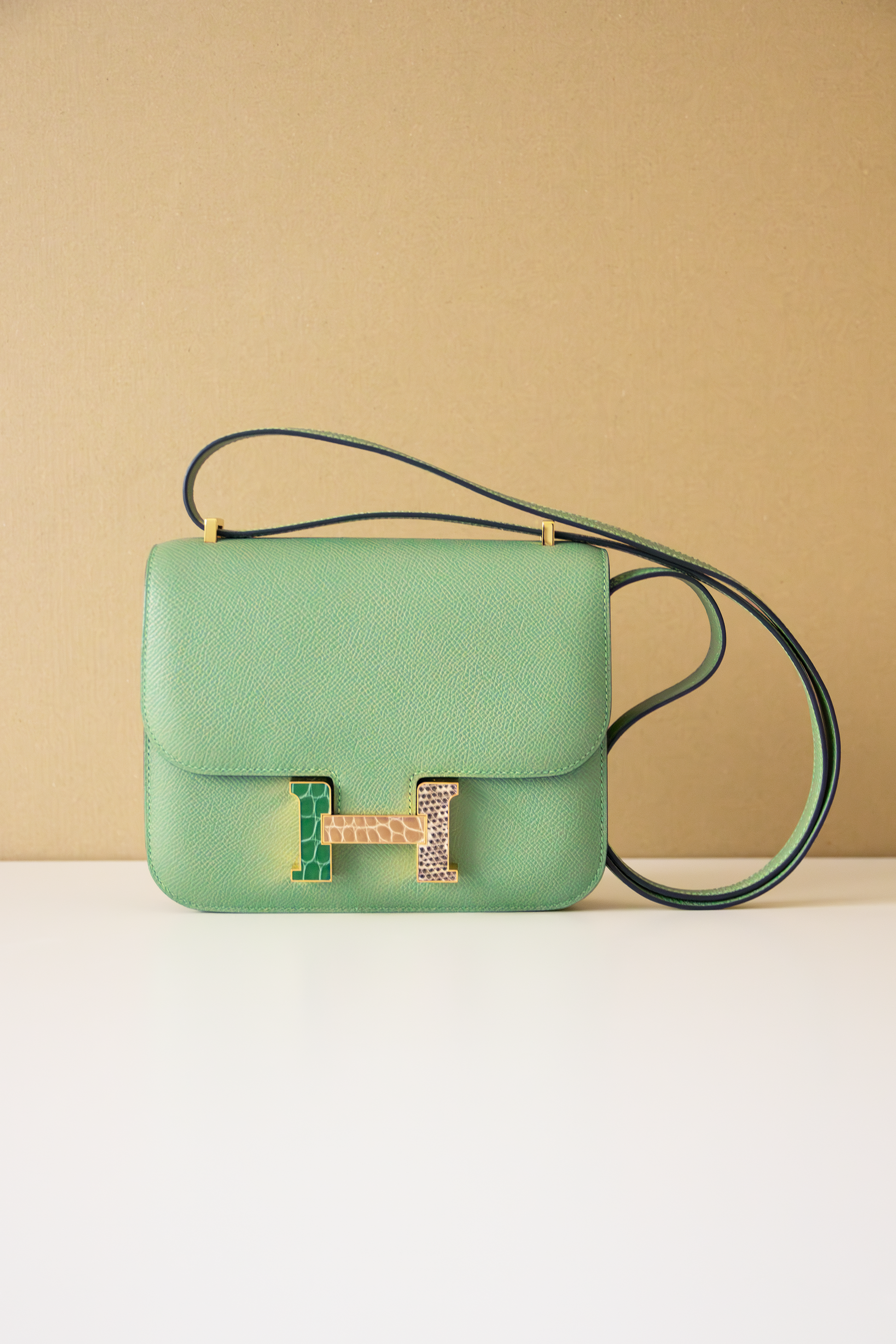 Hermès Mini Constance 18 Epsom in Vert Criquet with Exotic Buckle