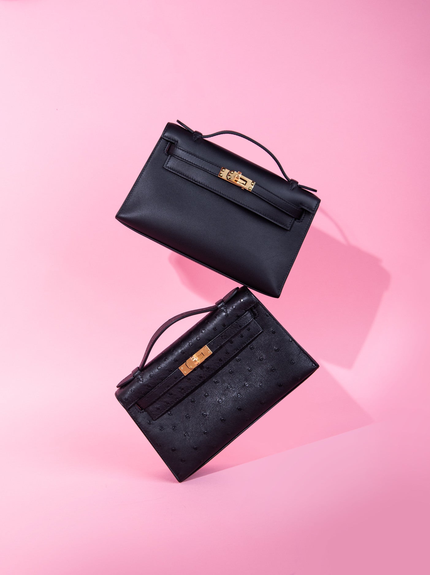 Hermès Mini Kelly Black Pouchette & Ostrich Mini Kelly Black Pouchette GHW