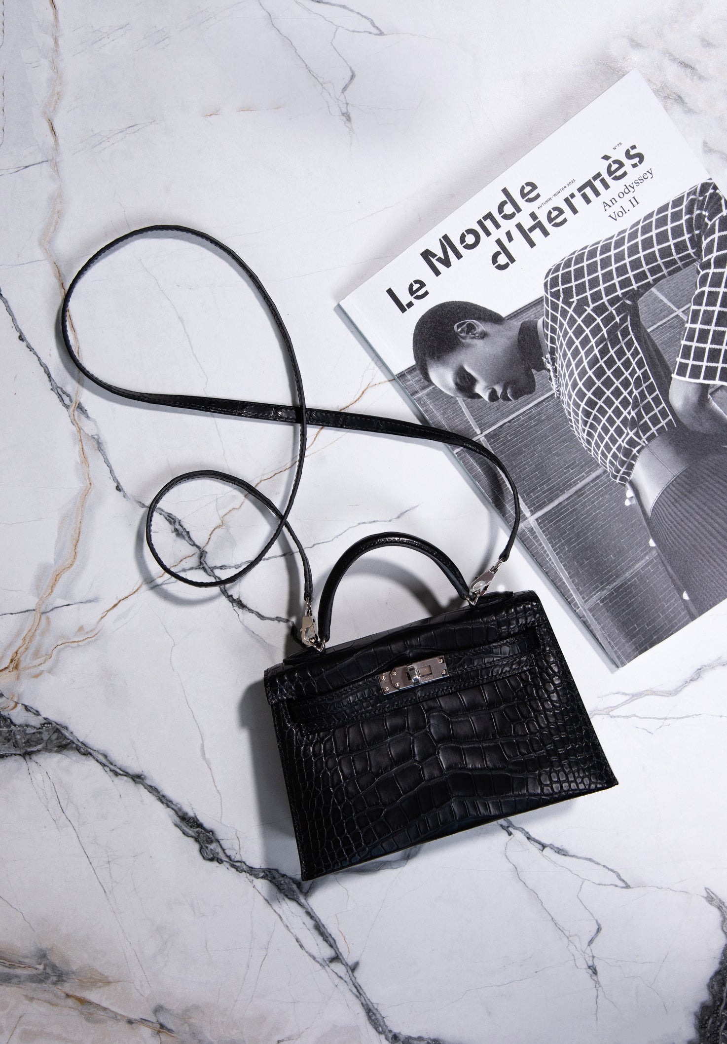 Hermès Mini Kelly Matte Alligator in Black PHW