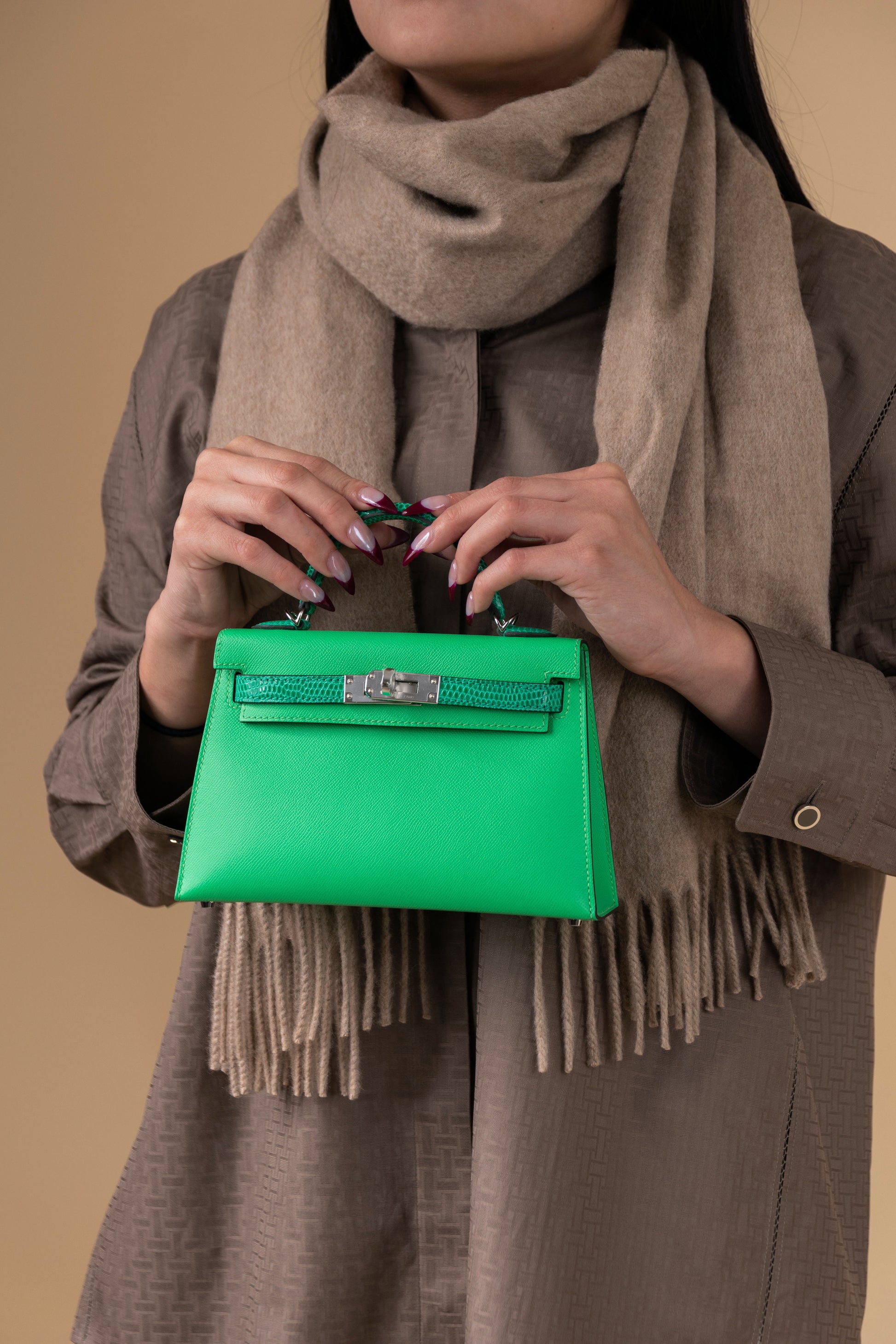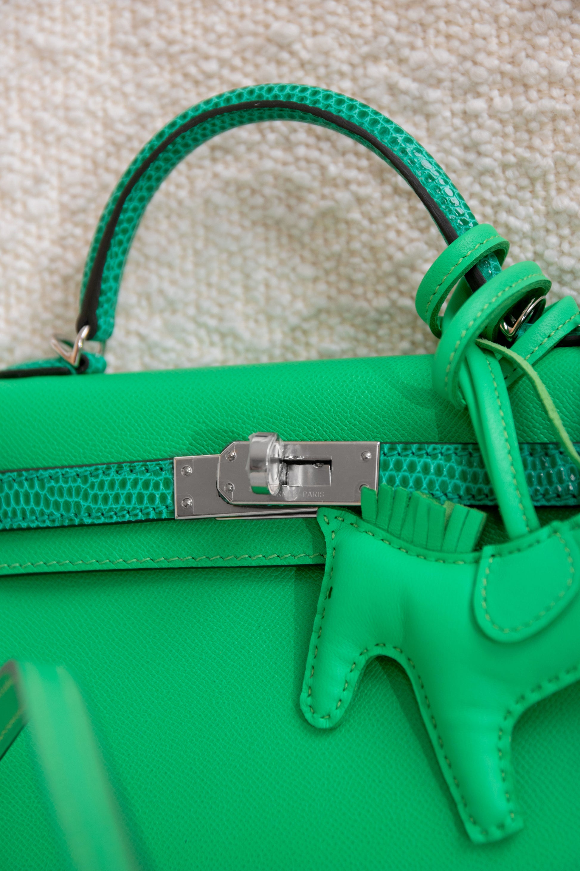 Hermès Kelly 25 Sellier Epsom Casaque Etoilee Ardoise/Noir/Vert Peppermint PHW
