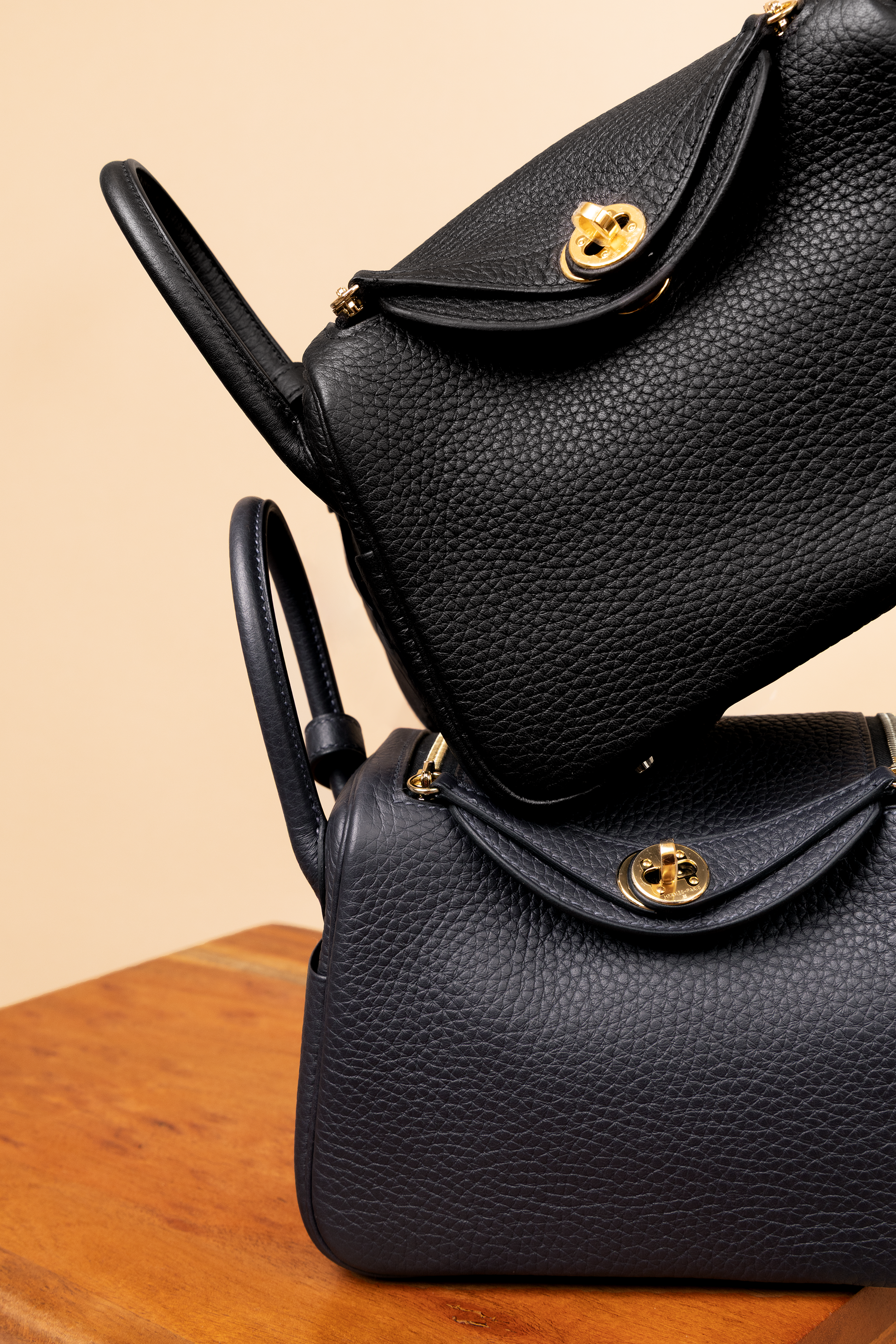 Hermès Mini Lindy Clemence in Black & Caban GHW