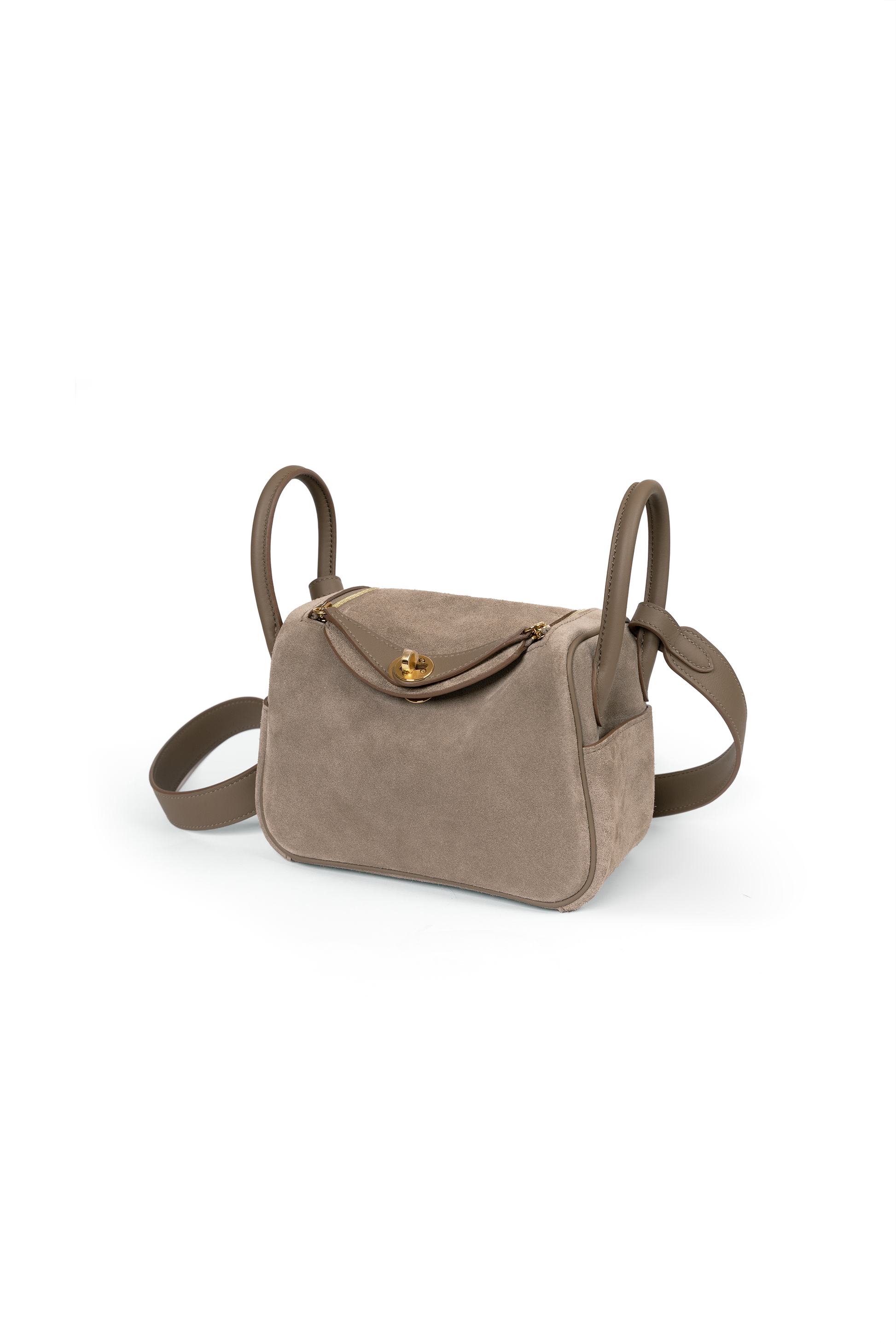 Hermes Mini Lindy Grizzly in Etoupe with Gold Hardware