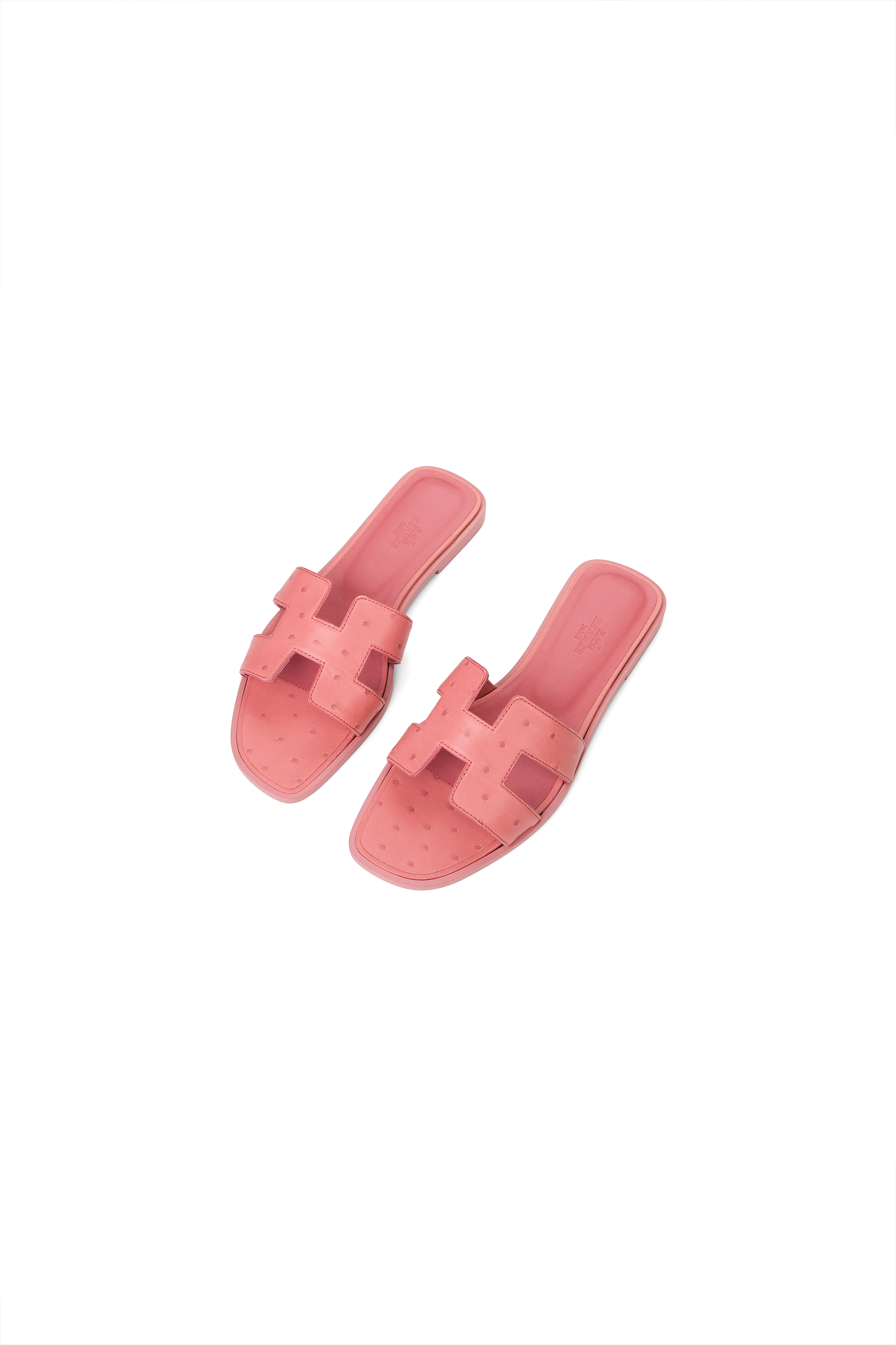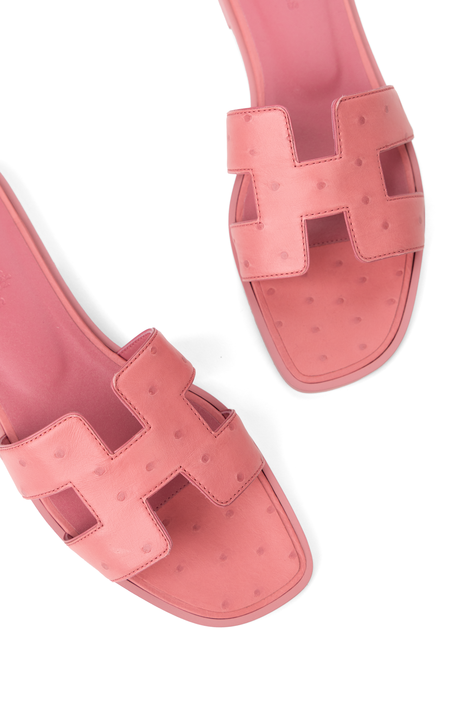 Hermes Ostrich Oran Sandals in Rose Amarante
