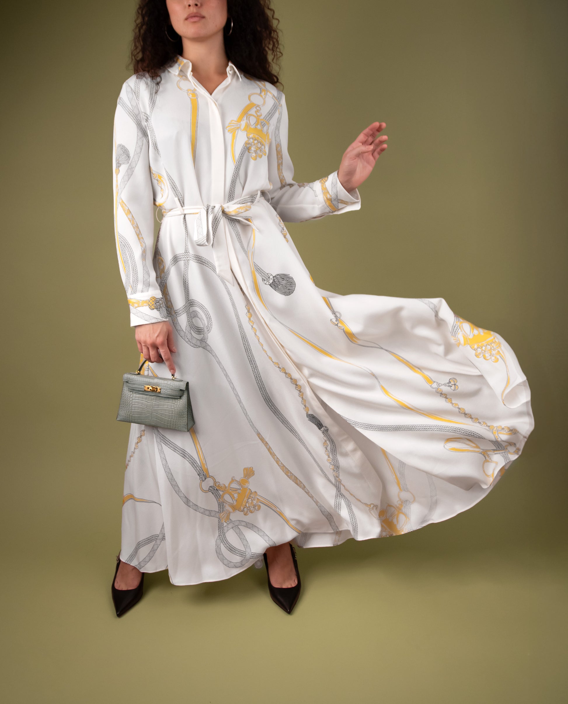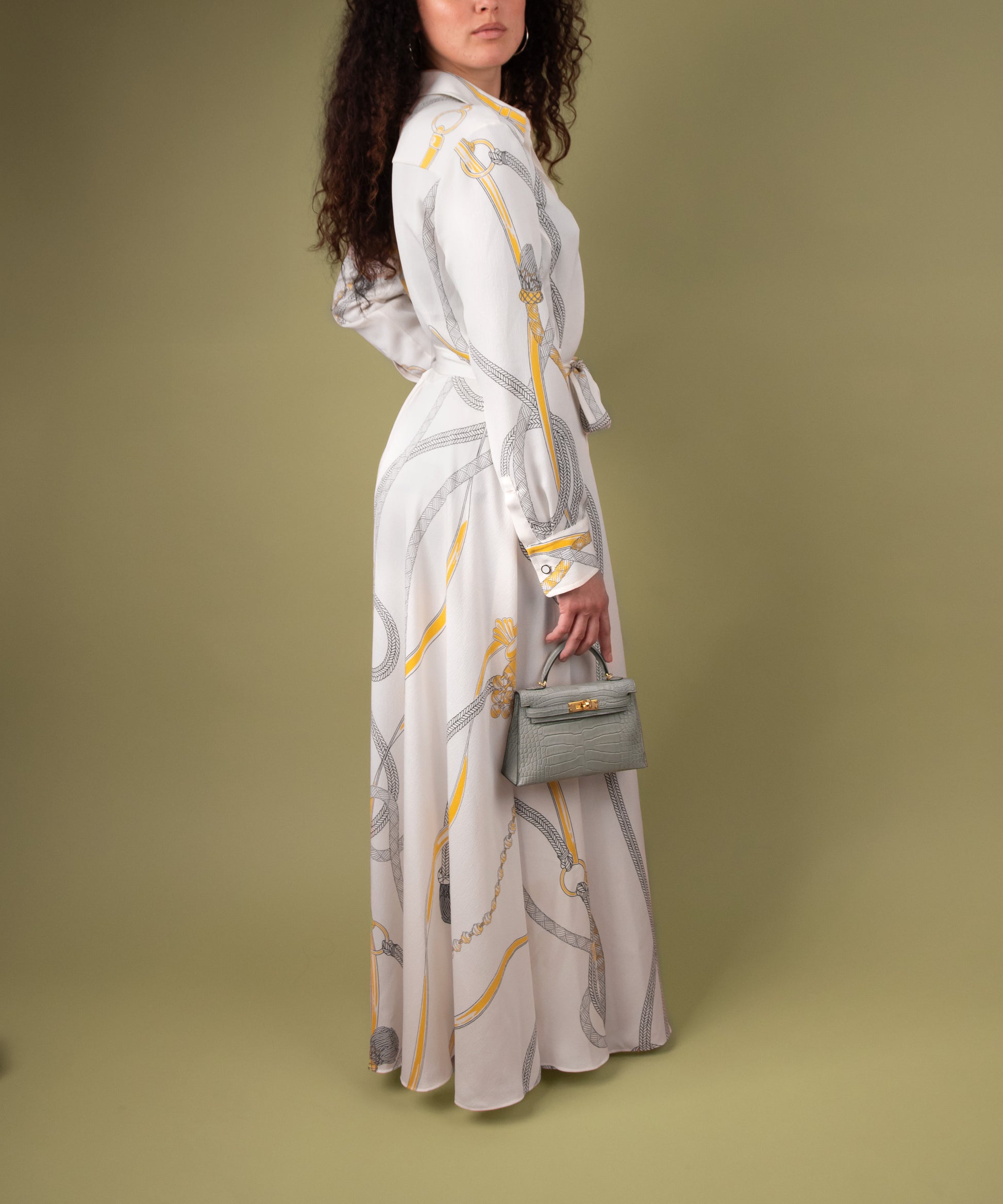 Hermès Palefroi Remix Print Dress & Mini Kelly Crocodile Gris Cement GHW