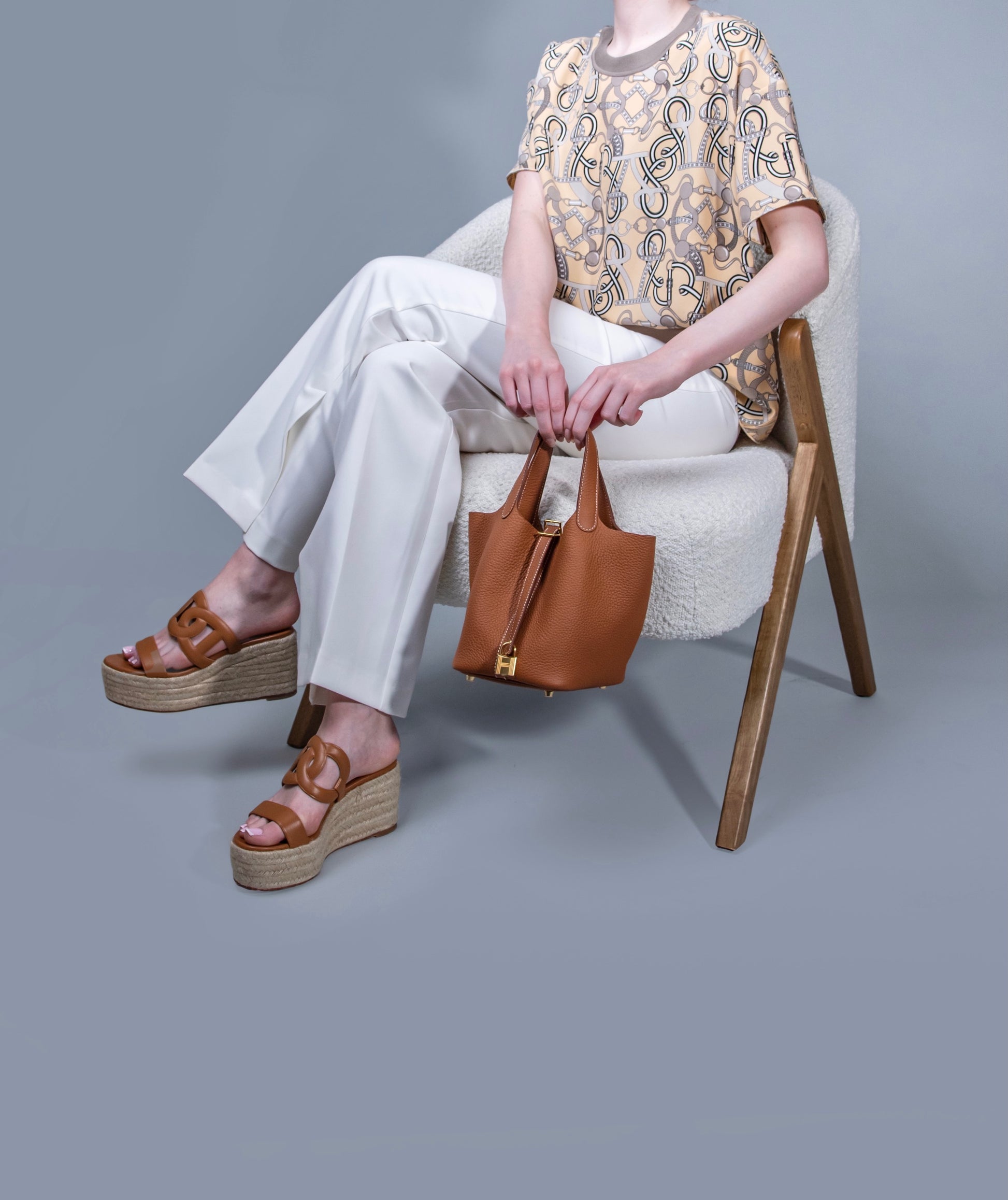 Hermès Picotin 18 Gold GHW with Epoppe Gold Espadrille Sandals