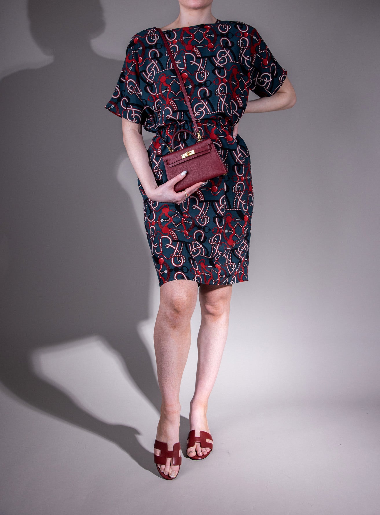 Hermès Short Caftan Dress with Mini Kelly 20 Chevre in Rouge H GHW