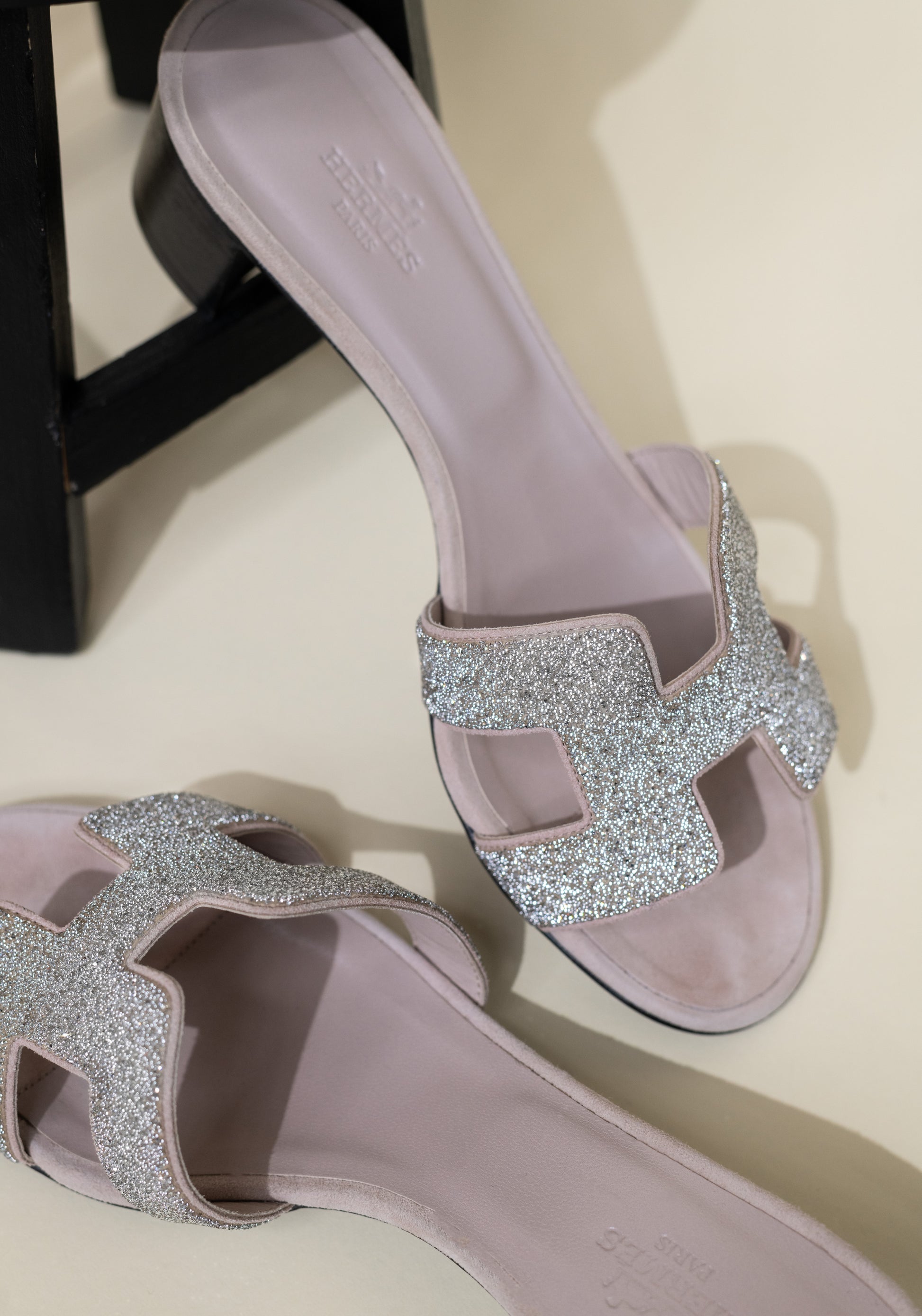 صندل هيرميس سباركلي أواسيس باللون الوردي الفاتح