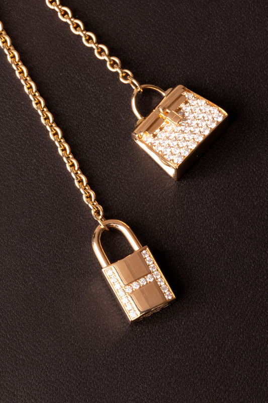 Hermès Amulettes Kelly Long Necklace in Rose Gold Diamond