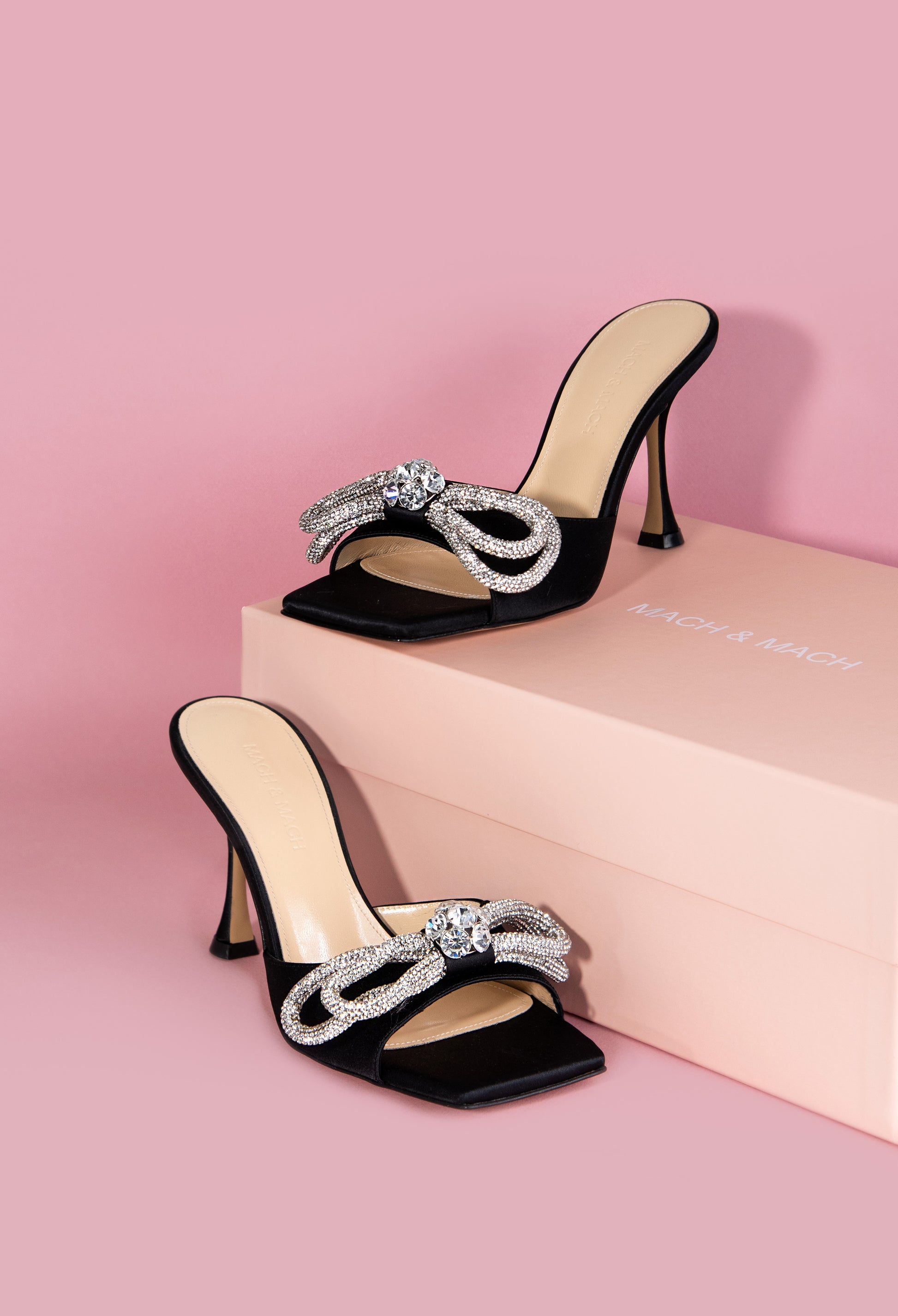صندل ماش آند ماش الأسود ذو القوس المزدوج من الساتان المربع