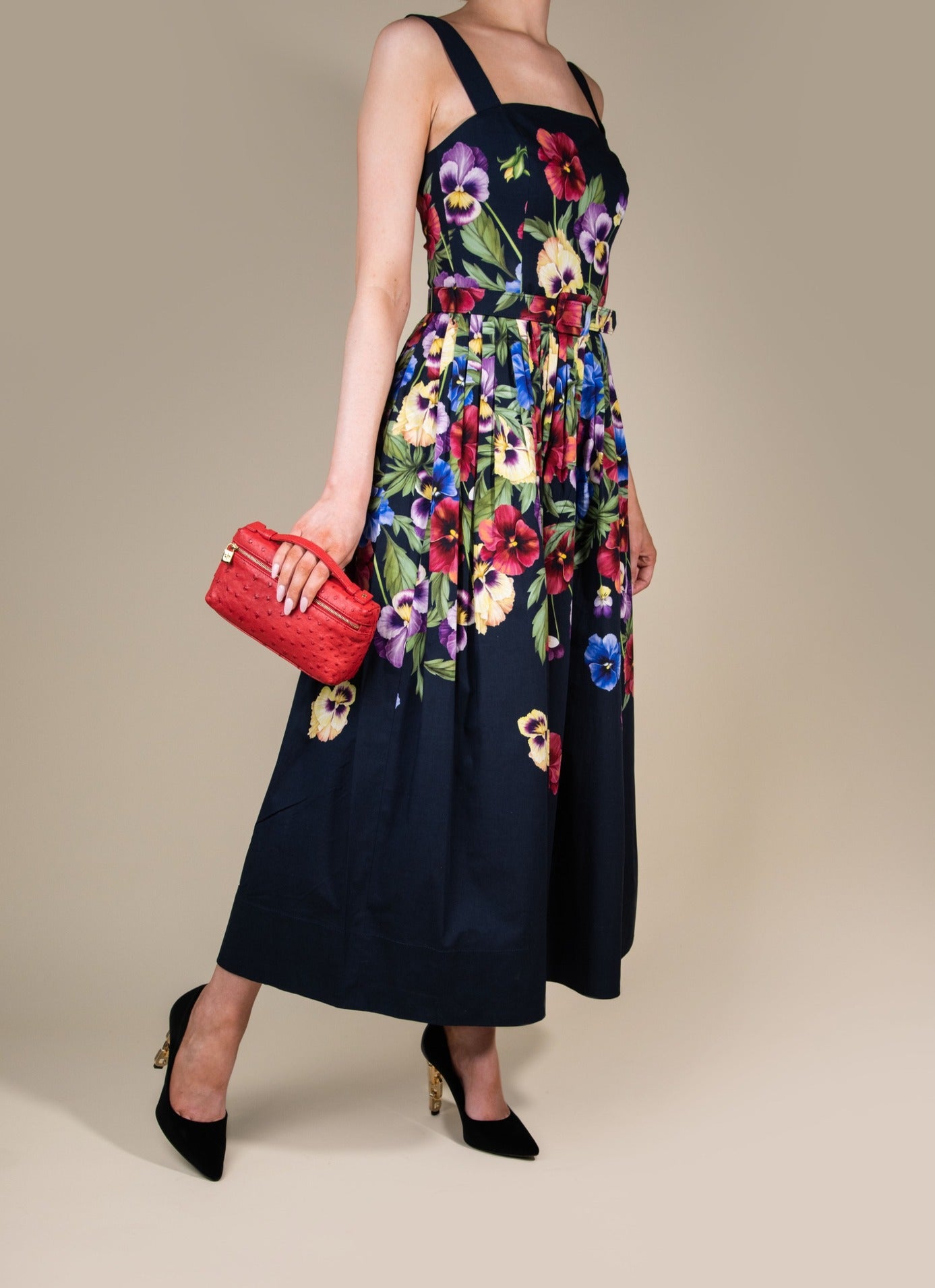 فستان أوسكار دي لا رنتا مزين بالورود مع حقيبة Loro Piana L19 Ostrich Rouge