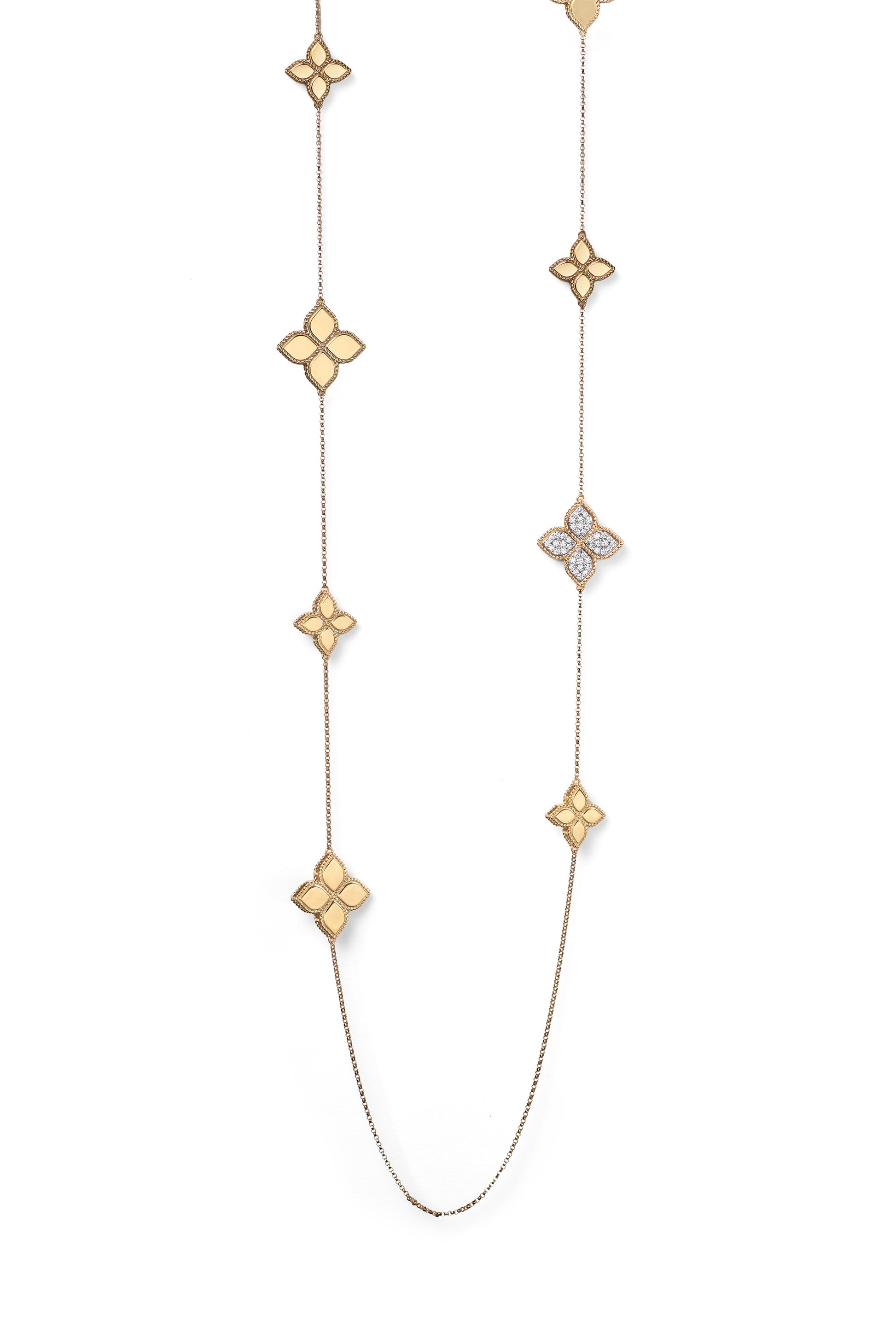 Roberto Coin Small Princess Flower Yellow Gold Diamond Necklace