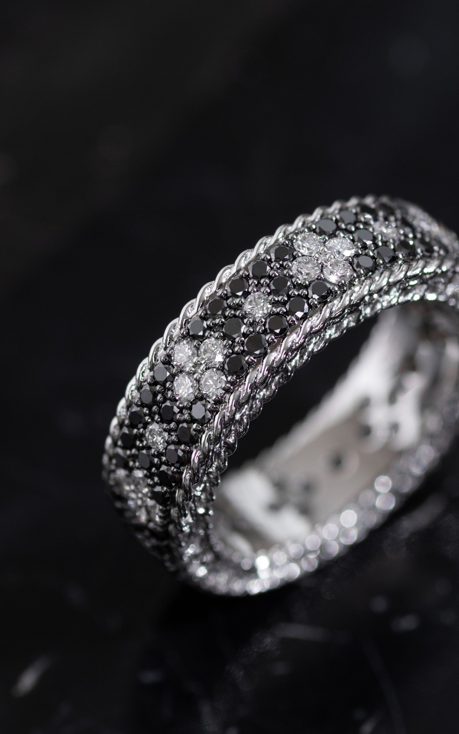 خاتم روبرتو كوين من الألماس الأبيض/الأسود