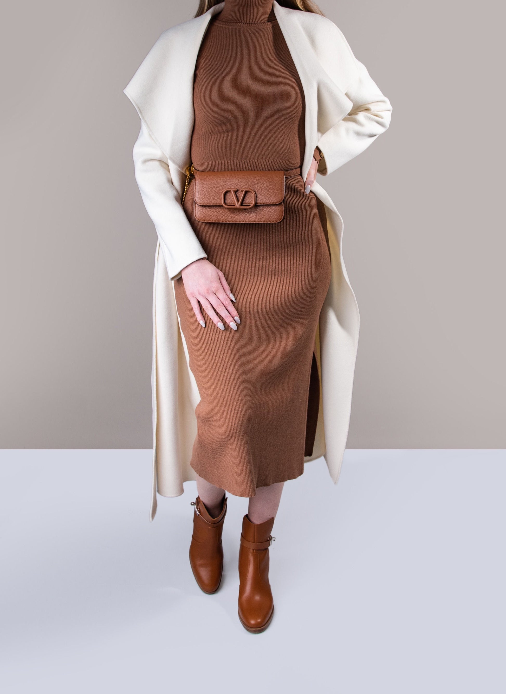 حقيبة حزام ذهبية من فالنتينو جارافاني مع حذاء هيرميس فرينشي ٥٠ للكاحل باللون الذهبي