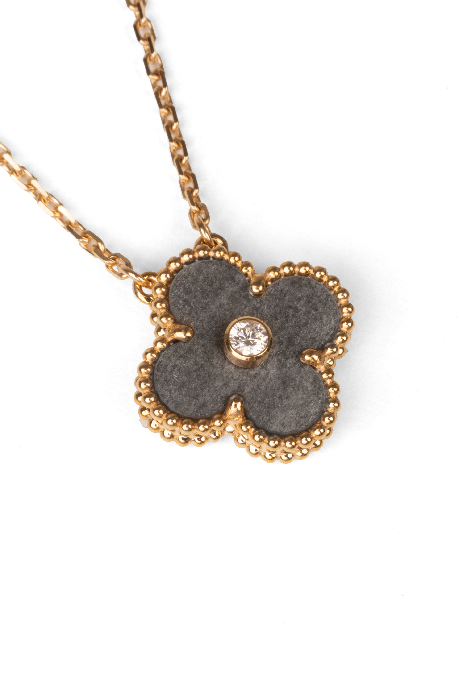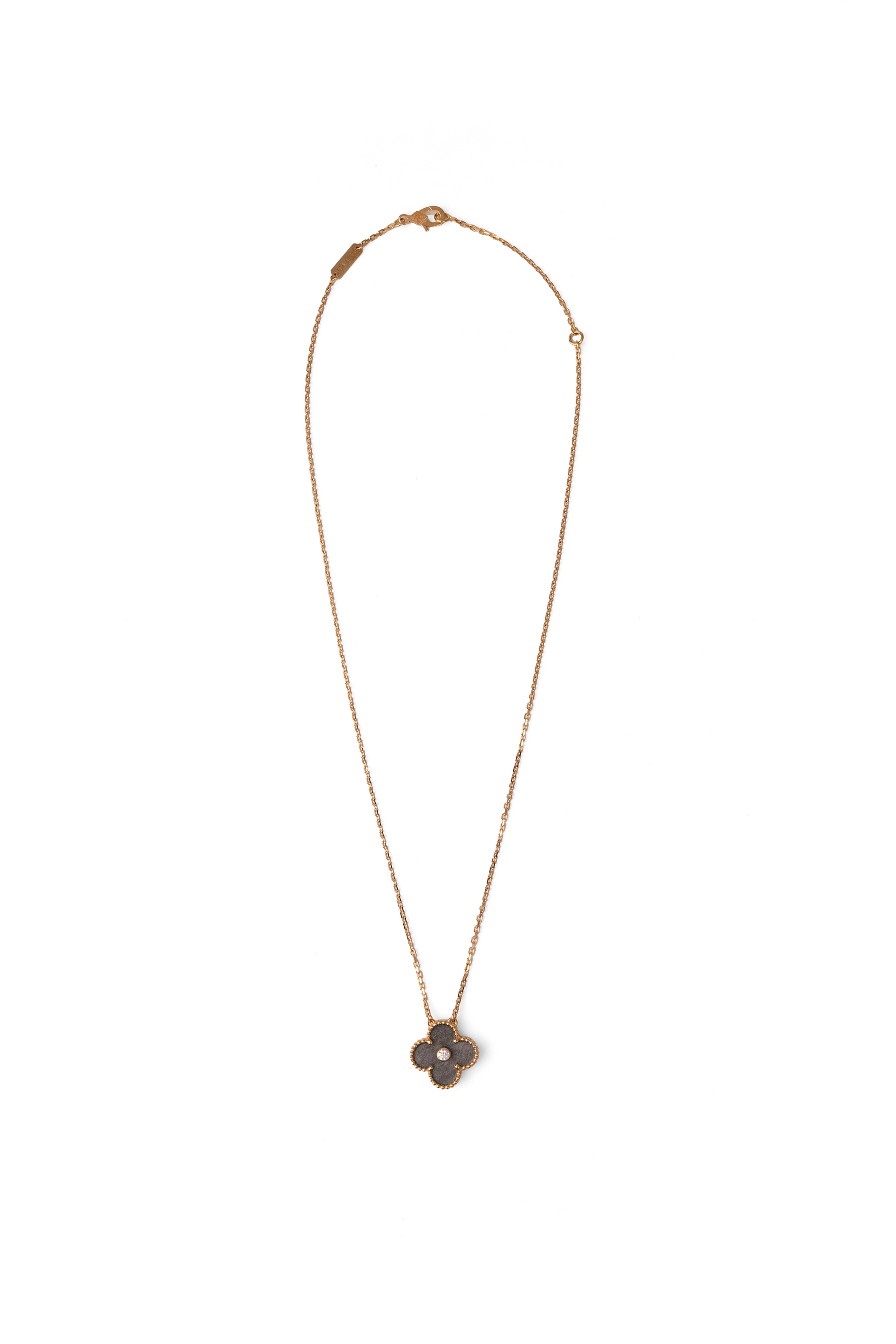 Van Cleef & Arpels Holiday Vintage Alhambra Obsidian Pendant Necklace