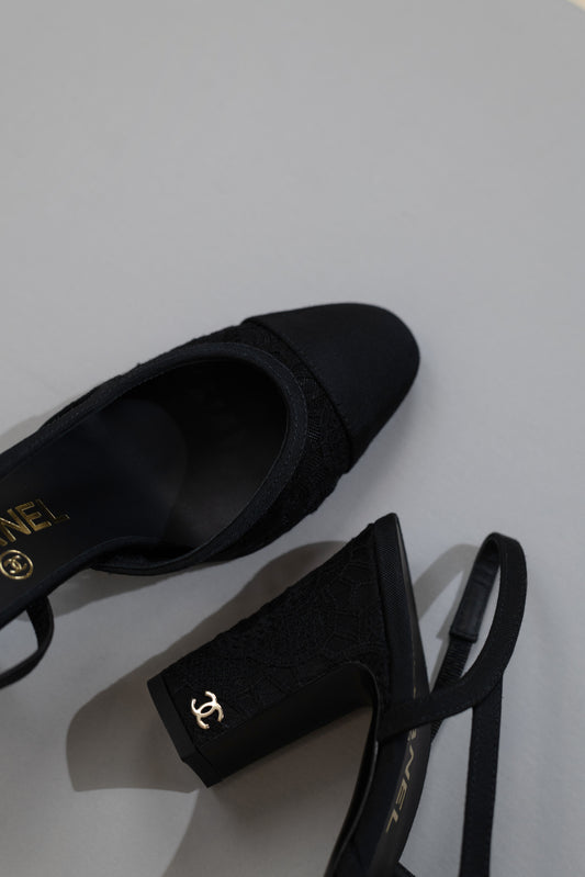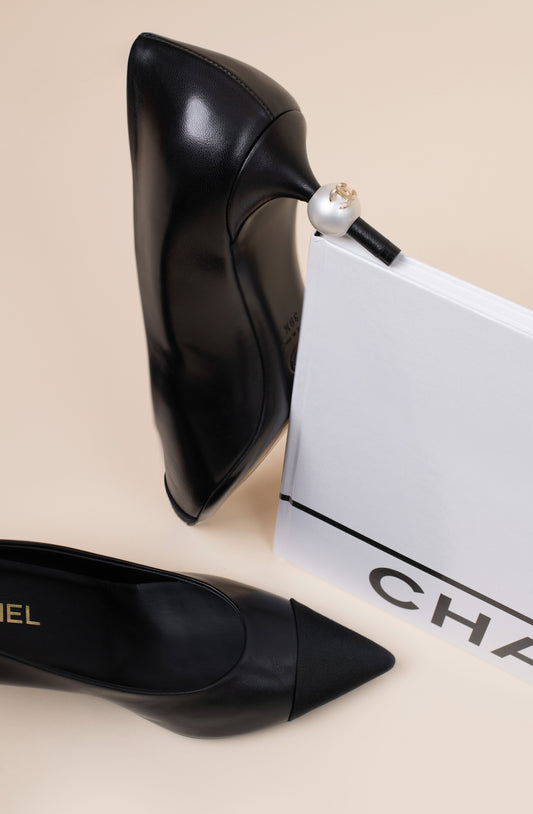 Chanel Black Pearl Slingbacks & Mini Black 31 Bag with Chain