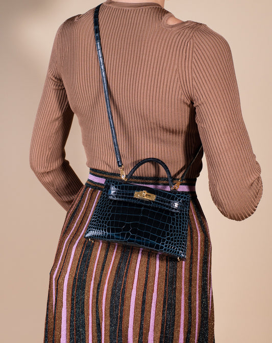 Hermès - Mini Kelly Crocodile in Vert Rousseau GHW