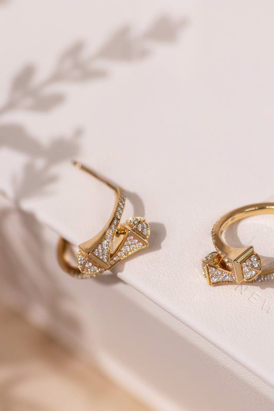 Marli Cleo Yellow Gold Diamond Huggie Earrings & Ring in Red Coral