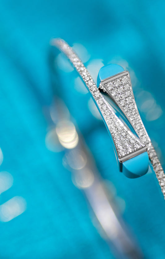 Marli Cleo White Gold Diamond Slim Slip-On Bracelet in Turquoise