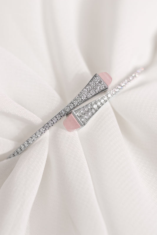 Marli Cleo White Gold Diamond Pink Quartzite Bangle