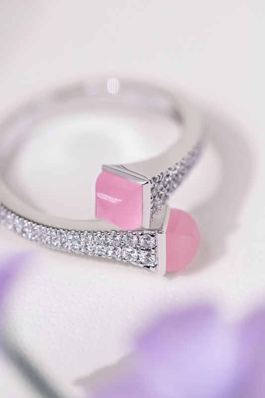 Marli Cleo White Gold Diamond/Pink Quartz Ring