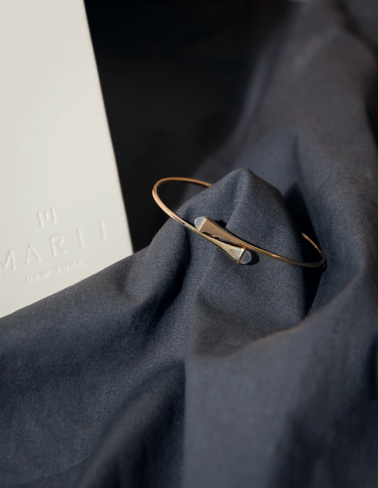 Marli Cleo Yellow Gold Bangle with Diamond & Moon Stone