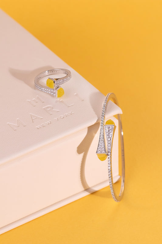Marli Cleo White Gold Ring & Bangle with Diamonds & Yellow Quartzite Stone
