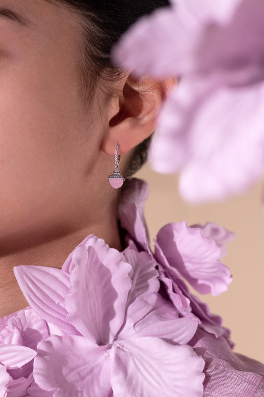 Marli Cleo White Gold Rev Luxe Diamond Drop Earrings in Pink Quartzite