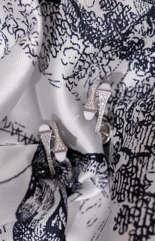 Marli Cleo White Gold Diamond Hoop Earrings in White Agate