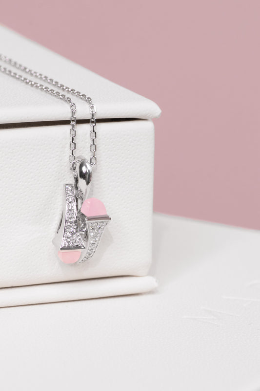 Marli Cleo White Gold Diamond/Pink Quartz Necklace