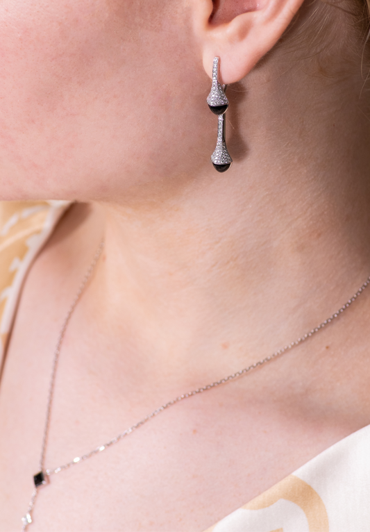 Marli Cleo White Gold Earrings w/Diamond Pave & Onyx