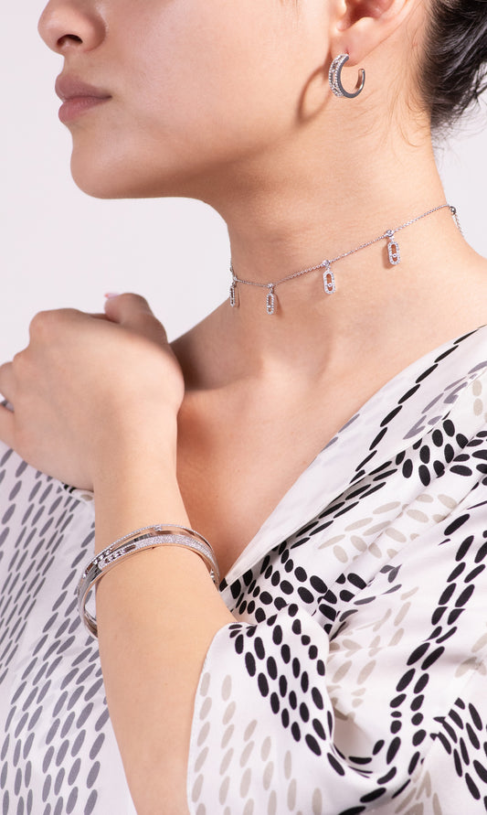 Messika White Gold Diamond Move Uno Multi Choker & Lucky Move Pendant with Move Uno Pave Drop Ring