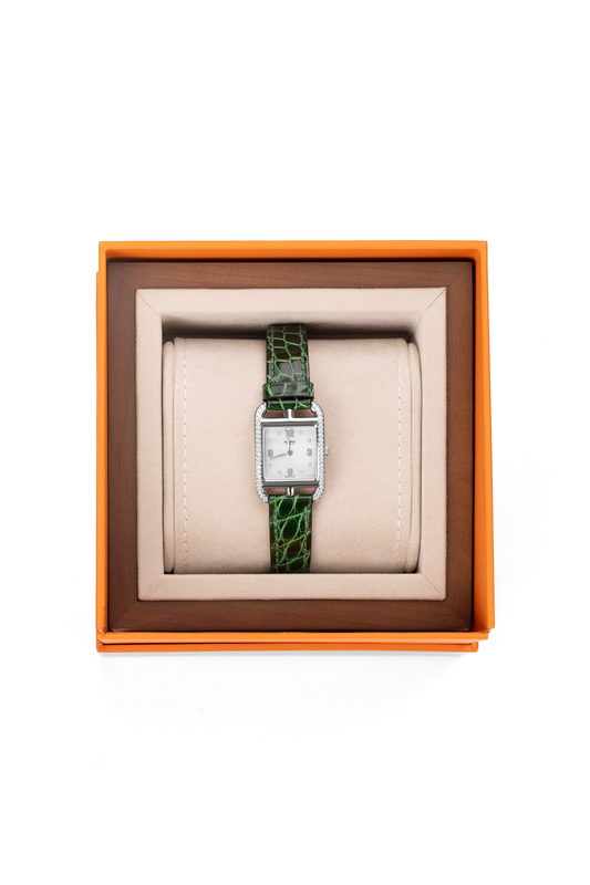 Hermès Cape Cod Watch in Diamond-Studded Stainless Steel with Green Alligator Strap