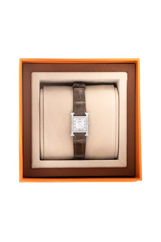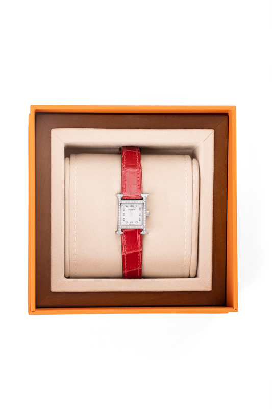 Hermès Heure Watch in Diamond-Set Stainless Steel with Braise Alligator Strap