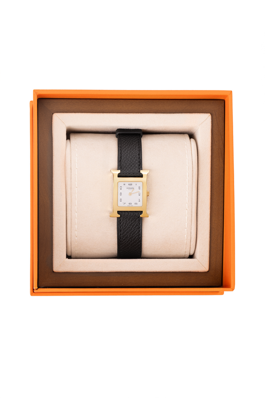 Hermès Heure Watch Yellow Gold-Plated Steel Case with Black Epsom Leather Strap