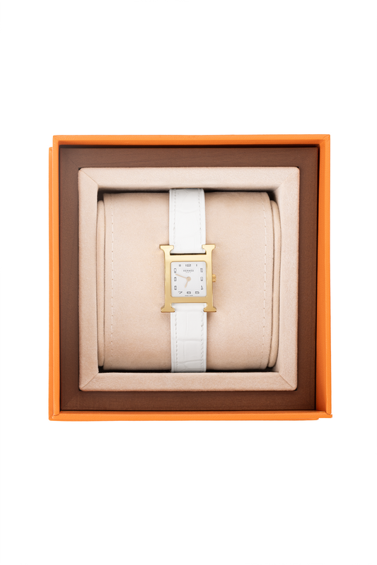 Hermès Heure Watch Yellow Gold-Plated Steel Case with White Alligator Strap