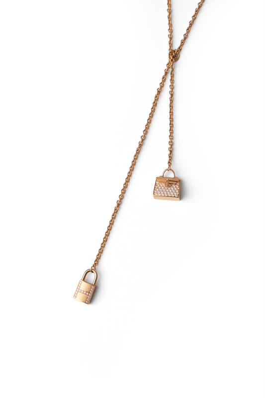 Hermès Amulettes Kelly Long Necklace in Rose Gold Diamond