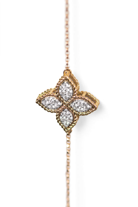 Roberto Coin Small Princess Flower Yellow Gold Diamond Necklace