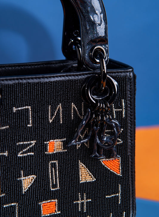 Dior Limited Edition Lady Dior Art Collection Small Black Lambskin Embroidered with Multicolor Pearls