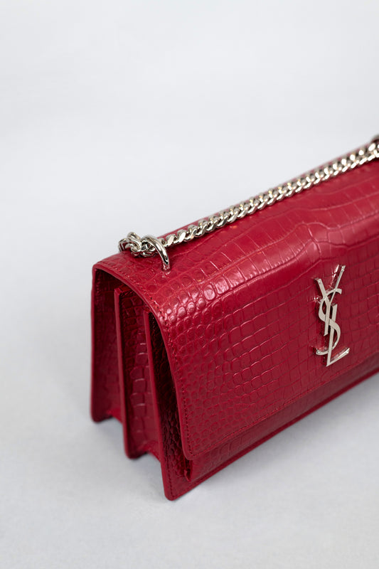 YSL Sunset Chain Wallet in Crocodile Embossed Leather