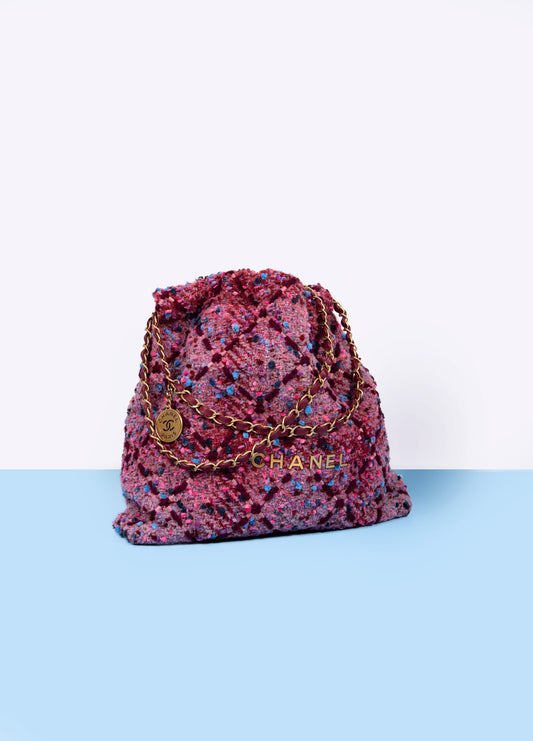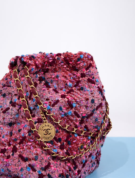Chanel - Tweed Hobo Bag in Pink/Burgundy & Multicolor - Details