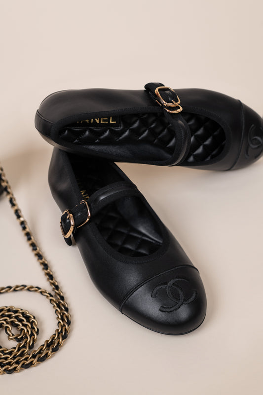 Chanel Small Black Nano Bag & Black CC Mary Janes