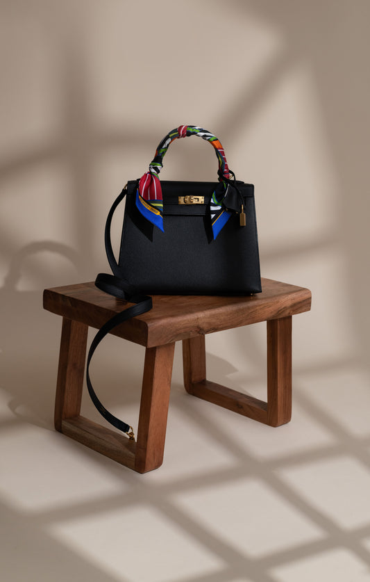 Hermès Kelly 25 Epsom Sellier Black GHW with Twilly
