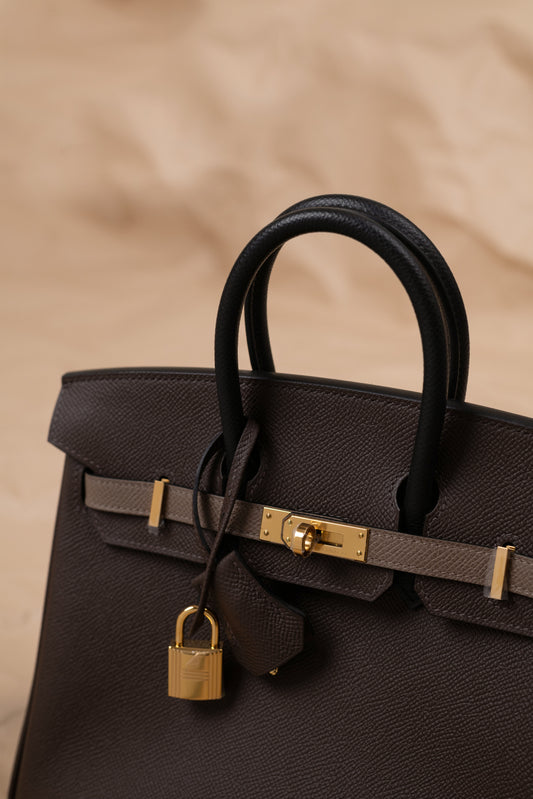 Hermès Birkin 25 Epsom Sellier Ecorce/Black/Etoupe GHW