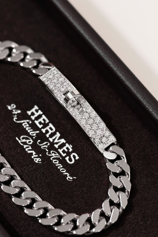 Hermès Kelly Gourmette White Gold Bracelet with Diamonds