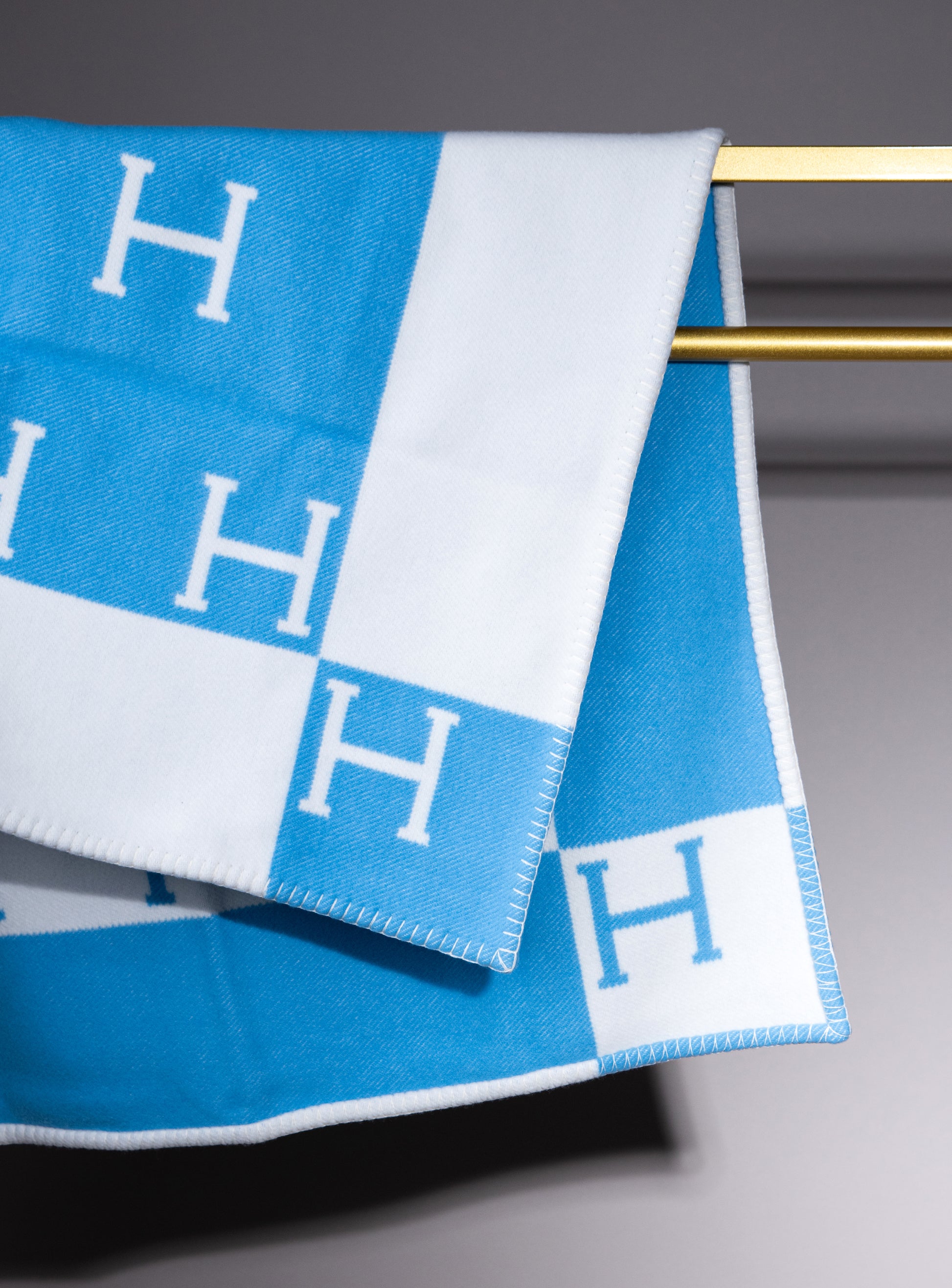 Hermès Avalon Baby Blanket in Blue Genievre White